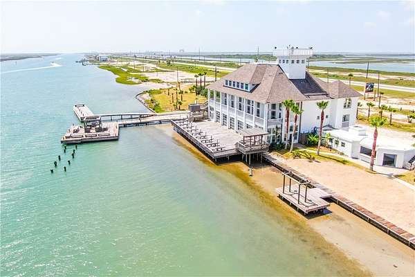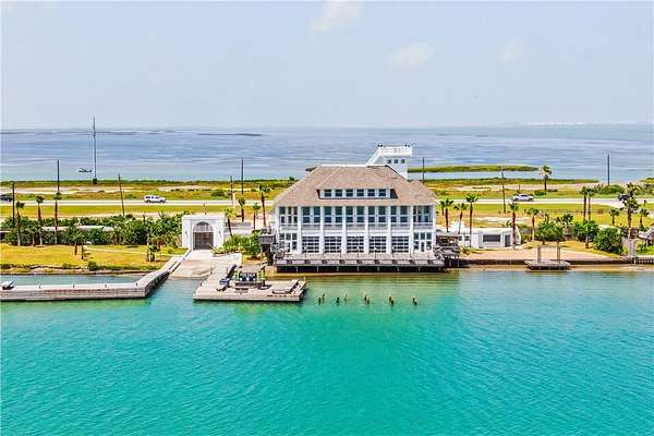Formerly a celebrated wedding venue and waterfront restaurant, The Seaside Mansion presents an unparalleled opportunity for investors, developers, or anyone seeking an iconic coastal property. This rare offering spans 3.19 acres (per Nueces CAD) across two contiguous lots, featuring coveted dual zoning-residential and commercial-along the scenic shores of Redfish Bay. The main residence boasts 6 bedrooms and 8 total baths, including spacious guest suites that formerly served as the groom's and bride's quarters-ideal for hosting large groups, retreats, or rental income. Deepwater channel access accommodates 100'+ boats, with a private dock and ramp already in place-perfect for boating, fishing tournaments, or a marina headquarters. With over 3 acres of waterfront, the property delivers remarkable flexibility and upside potential. Whether your vision is a boutique resort, private estate, restaurant, event space, or signature marina, this site is primed for a range of possibilities (buyer to independently verify all intended uses and zoning requirements). Located just minutes from the Port Aransas ferry, The Seaside Mansion offers both seclusion and convenience at the gateway to Texas' top coastal destinations. Bring your imagination and transform this coastal landmark into your next trophy asset or legacy home. Imagine the possibilities: a luxury private residence, a thriving event venue, a dynamic restaurant, or even a fishing tournament headquarters with its deep-water access and capacity for large vessels. The property features a boat ramp, an extensive dock and pier, and is strategically positioned along a deep-water channel. Inside, the mansion offers six bedrooms plus versatile guest quarters. The second floor features an expansive, air-conditioned living room, while the first floor houses a grand banquet hall and commercial-grade kitchen facilities that open onto a sprawling outdoor deck overlooking the bay.