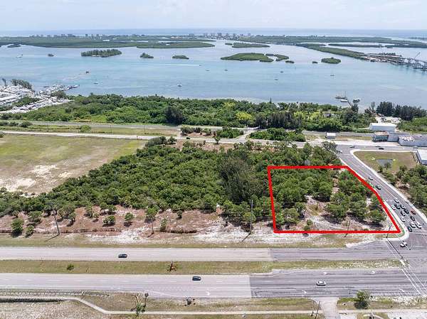 Est $7,258/moPrime commercial traffic lighted corner. Just North of the new $100 million North Hutchinson Island Bridge under construction. Excellent location for C-Store or other high visibility commercial use. Water and Sewer available to this site. (see utilities map in pictures showing 12 inch water main on US #1 in front of property and 8 inch water main on Juanita Ave. Also 16 inch sewer force main on US #1 in front of the property. This parcel is a portion of a larger property and will be split under the City of Fort Pierce '' Minor Replat application process'' (See letter from City under documents tab). See supplement for more info on new North Bridge build.