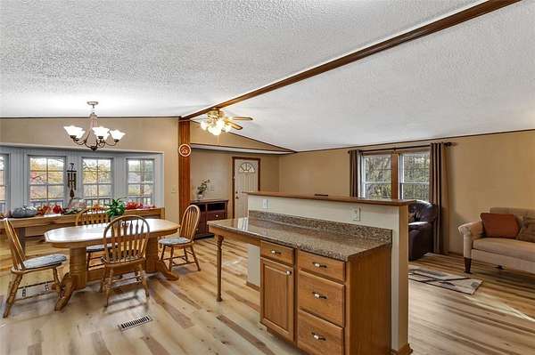 Own a piece of paradise here! 4.9 level acres within .7 miles of the boat launch! Newer gas forced air furnace, hot water heater and central air. Newer roof, Pellet stove in game room. Huge eat-in kitchen with bump out bay window, walk-in pantry, newer vinyl plank flooring in kitchen, living room and hallways. Front and side covered decks to enjoy the property views from. 24'x20' 3 stall barn with access to 1 acre fenced in pasture, 36x18 open barn previously rented for boat storage, 8'x8' craft shed, 12'x10' wood storage shed, Two 24'x24' detached garages,