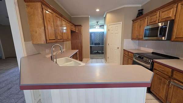 - Auto Garage Opener, Carpeting, Ceiling Fan(s), Drapes, High Ceilings, Jetted Tub, Pantry, Propane Tank-Owned, Shades/Blinds, Tile Flooring