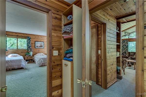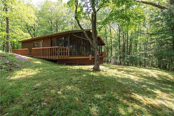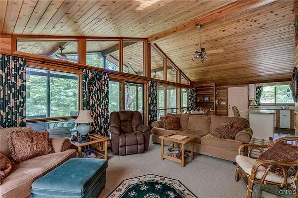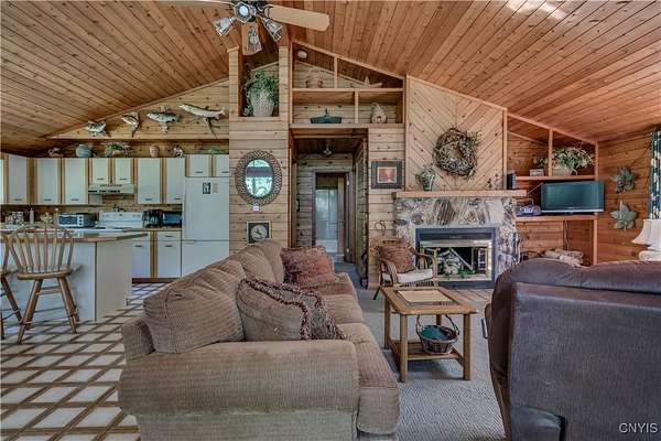 CHARMING YEAR-ROUND HOME ON 3.74 ACRES OVERLOOKING THE THOUSAND ISLANDS GOLF COURSE! Welcome to your private retreat on Wellesley Island which is accessible by vehicle. This beautifully maintained 1,392 sq. ft. year-round home is perfectly nestled on 3.74 picturesque acres-two parcels-right along the fairway of the renowned Thousand Islands Golf Club's Lake Course. Tucked away in one of the most desirable locations in the Thousand Islands, this property offers the perfect blend of privacy, scenic beauty, and convenience. Step inside to discover a warm and inviting open-concept layout where the kitchen, dining, and living areas flow effortlessly together-ideal for entertaining or quiet evenings at home. Pine tongue and groove walls throughout the home lend a cozy Adirondack feel, while the impressive stone fireplace adds rustic charm and warmth to the main living space. Enjoy peaceful mornings and stunning sunsets from the spacious screened-in porch or deck, both offering relaxing views of the rolling fairway and surrounding nature. Two comfortable bedrooms and a full bathroom are conveniently located on the main floor, making single-level living a breeze. Outside, a handy storage shed offers space for all your tools, garden gear, and outdoor equipment. Whether you're an avid golfer, nature enthusiast, or simply seeking a tranquil escape, you'll appreciate the serenity and space this property provides-all just minutes from the Thousand Islands Bridge, U.S.-Canada border, marinas, additional golf courses, and of course, the breathtaking St. Lawrence River. This property also offers excellent rental potential. Don't miss this rare opportunity to own a slice of paradise on Wellesley Island!