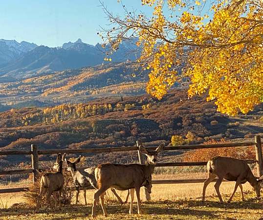 From Main and Townsend, Montrose CO, head east on HWY 50 for 21.9 miles. Turn south (right) on Cimarron Road, continue for 6 miles. Atthe intersection of P77 and Cimarron Road turn north (right) on P77, continue for 0.8 mi. The ranch's main entrance will be on the east (right)side of the road.