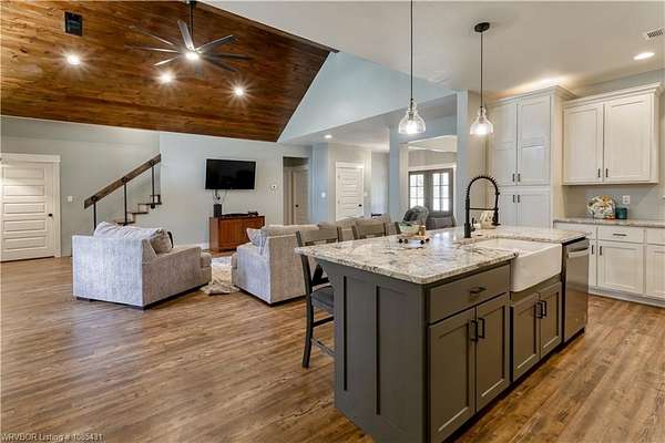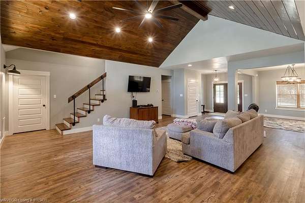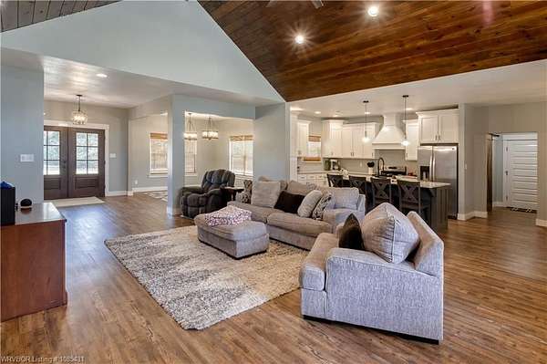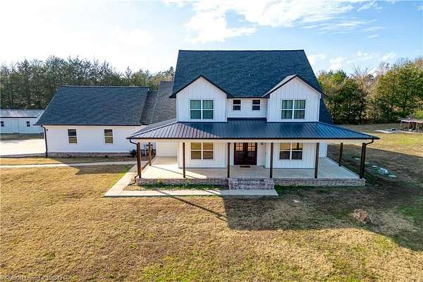 Custom built in 2022 this modern farmhouse with 13.84 +/- acres allowing for added privacy and natural beauty is being offered to the market for the first time. Centrally located and only minutes from Greenwood, this property offers both convenience and a beautiful rural setting.A spacious covered front porch welcomes you into a beautifully designed home featuring 5 bedrooms, including the primary suite and a second bedroom conveniently located on the main level. With 3 full baths, a formal dining room, breakfast area, a cook's dream kitchen, a spacious pantry, and a large laundry room, this home offers both comfort and functionality.The family room showcases a striking wood ceiling and an abundance of natural light, creating a warm and inviting space for family and friends. Storage is abundant with attic storage, an oversized garage, and a versatile outbuilding with a concrete floor-perfect for equipment, hobbies, or additional workspace. The home also features a 3-zone HVAC system, with separate zones for the upstairs, the primary bedroom, and the family room for efficient, customized comfort. A rare opportunity to own a modern farmhouse retreat with acreage, privacy, and exceptional craftsmanship. Ring door bell does not convey.