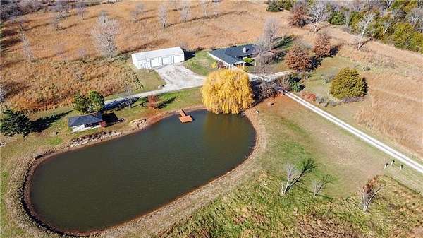 Come see this beautifully maintained 3 bed 2 bath (with a 4th non conforming room) just outside of Pleasant Hill with 19 acres! It has a full 3 bay shop with concrete floors and power and a covered shelter house with power overlooking the pond with dock! Have fun hosting parties or just fishing! NEW ROOF put on house, shop and shelter house in October 2025!! New carpet and window in the primary bedroom along with a new window in the 2nd bedroom. There are native grasses in the fields: Indian and Little Blue Stem, cherry and peach trees near the raised garden beds that have blueberries in them! There is also a fenced animal pen and a cattle waterer. Secondary pond and small shed located in the back pasture. Have backyard parties in the shelter house-there is a horseshoe set and pit! Paddleboat and picnic table also stays with the house! Enjoy paddling around in the pond!