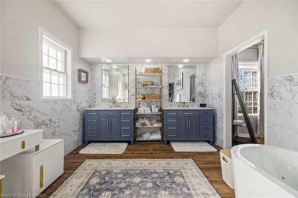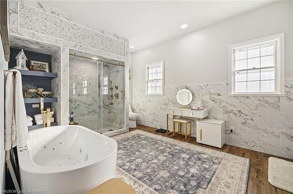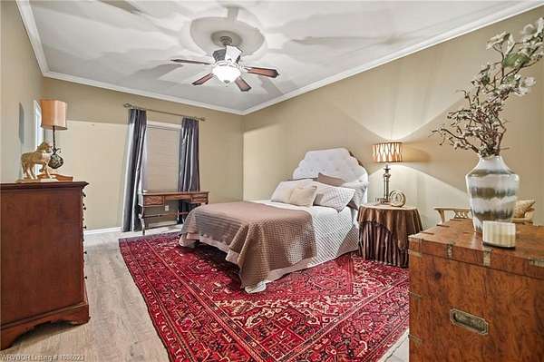 This amazing and beautiful, rare compound-style property centered around 5,000 plus square feet in the main residence. It also includes a fully remodeled guesthouse of 1,600 plus square feet and 2700 square feet (30x90) shop with climate-controlled space. The main residence offers 4 bedrooms, each with full en-suite bathrooms, generous room sizes, and huge walk-in closets. The kitchen features a gas range, double ovens, a large island, and extensive cabinetry. Detailed trim work and classic finishes carry throughout. Formal living, formal dining, huge media room and light filled sunroom, plus custom utility room and private home office/gym add to the quiet luxury. Primary bedroom has LVP flooring, built in fireplace, massive bathroom with double vanities, walk in shower and jetted free standing tub. Stunning outdoor living with privacy fence, artificial turf, louvered metal pergola, composite deck, fire pit, outdoor kitchen is next to the 3-bay carport. The guesthouse provides a second living option with 3 bedrooms and 2 bathrooms. It is ideal for multi-generational living, long or short term rental income. Currently rents at $1,400 a month. The shop adds vast utility for a high-end workshop, equipment, storage, hobbies, or business use. There are 2 - 8 foot garage doors plus 3-10 foot garage doors with 2 mini split HVAC units. The property is zoned transitional for even more possibilities. Quick access to I-540 puts shopping, dining, and everyday conveniences close by.