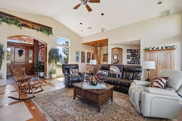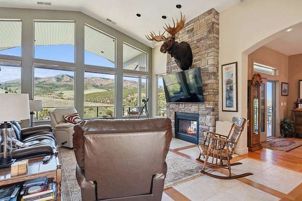 Enjoy some of the most breathtaking, panoramic views the entire valley has to offer in this private setting consisting of approximatley 4,700 sq ft of custom build sitting on 2.76 acres and an additional ownership of 2.5 acres in the subdivision "open space". Unique floor plan rests against a bench offering views from every room with color scheme and interior finish design having the surrounding exterior elements in mind. This is an open floor plan with access from most rooms to covered and wrap around maintence free deck that brings you closer to the abundant wildlife and provides peace and serenity as you enjoy either level. Outdoor kitchen with exterior fireplace insert allows for enjoyment year round as the Rinnai system boilers keep all floors warm year round and provide for the most efficient heat possible. Have your favorite agent schedule an appointment as an attached document 5 pages long covers all of the custom features with too many to fit in these limited public remarks.