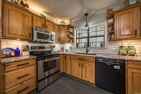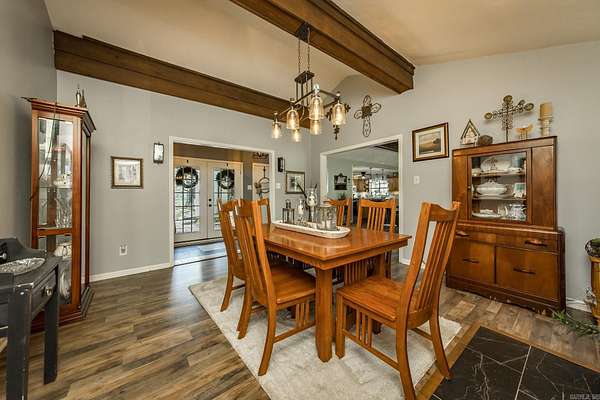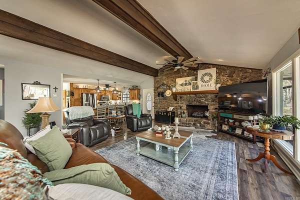 Discover the perfect blend of privacy, comfort, and modern updates with this 3-bedroom, 2.5-bath, single-story home set on over 7 tranquil acres. Located just 30 minutes from Little Rock and only 2.5 miles from Tar Camp Park along the Arkansas River, this property offers both convenience and a peaceful retreat. This spacious 1-story home offers an updated kitchen featuring quartz countertops, a granite sink, custom oak cabinets, a stylish new backsplash, updated fixtures, and under-cabinet lighting, newer refrigerator (2024) and dishwasher (2024). Other improvements include updated bathrooms, a newer HVAC system, and a water heater (2024), Two fireplaces, and Pecky Cypress Entrance. Outside, the property truly shines with a newly built 60x40 barn (2024), gutters with leaf guards, and a dedicated RV pad with electrical hookup—perfect for storage, hobbies, etc. The expansive acreage provides endless opportunity to enjoy nature or recreation.