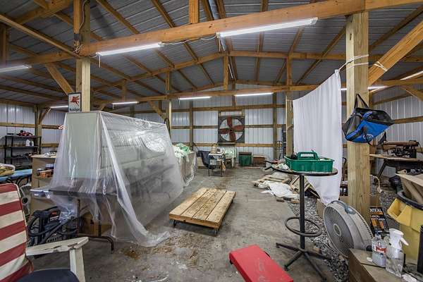 - Barns/Buildings, Guttering, Outside Storage Area, Partially Fenced, RV Parking, Shop