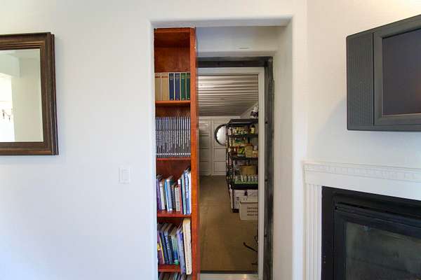 Hidden Underground Bunker: Discreetly accessed through a bookshelf, this 8' x 20' concrete-encased bunker includes: Ventilation, lighting, GFI outlets, and emergency escape hatch, Dual mini fridges, storage racks, and stable year-round cool temperature, Stocked with over 150 long-term food storage cans from Mountain House, Thrive, and others as well as a Medical trauma kit by Dr. Alton included.