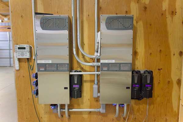 Solar & Power Systems: Built for true energy independence: Two 8,000W Outback Radian Power Centers with multiple Classic 150 charge controllers, 12KW of ground-mounted solar panels (45 x 260W),16 Fullriver AGM 830Ah batteries (new & ready for install) Battery bank wired to support both barn and greenhouse, with cross-over support to the main house, 30KW 3-phase backup generator for added redundancy