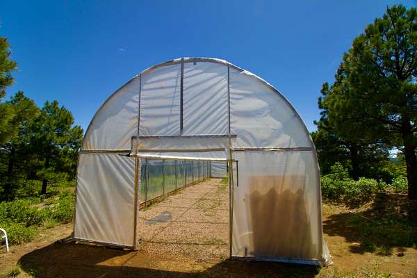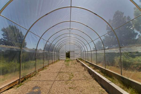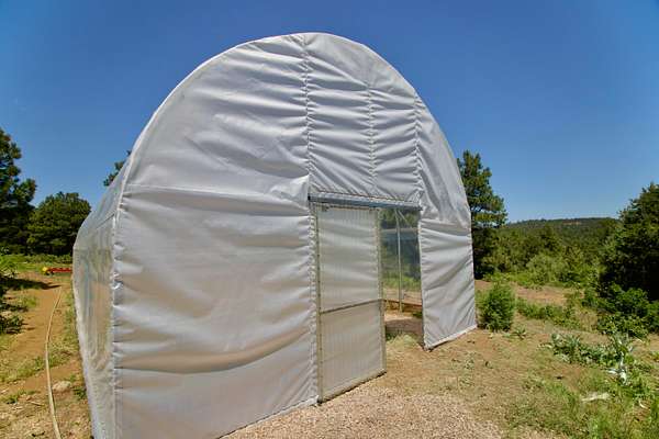 Greenhouse A 20' x 60' x 15'10" high tunnel greenhouse is ready for year-round growing: Galvanized steel frame with roll-up end