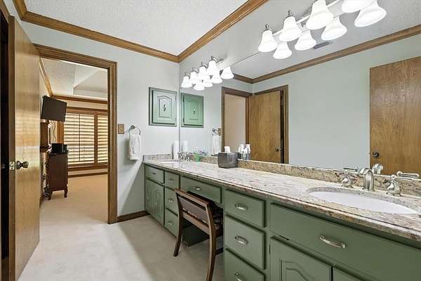 - Cathedral Ceiling(s), Decorative Lighting, Double Vanity, Eat-In Kitchen, Granite Counters, High Speed Internet Available, Kitchen Island, Natural Woodwork, Open Floorplan, Pantry, Vaulted Ceiling(s), Wainscoting, Walk-In Closet(s), Wet Bar
