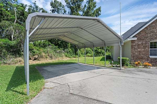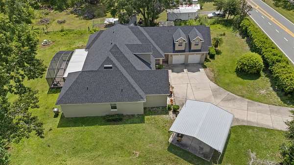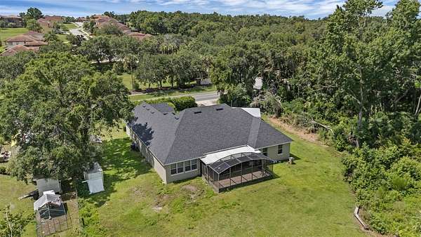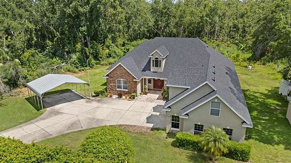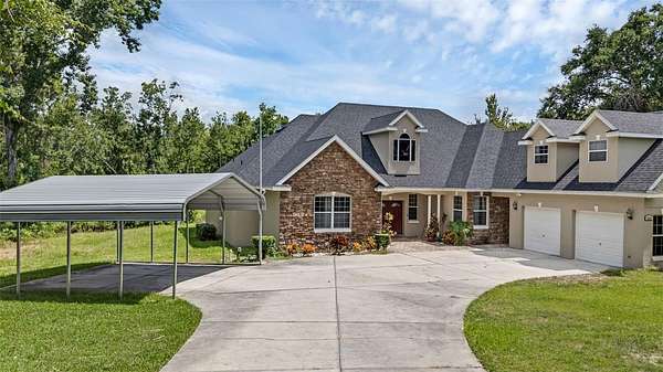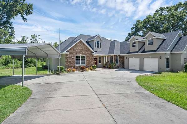 Under contract-accepting backup offers. Experience the perfect blend of space, privacy, and comfort in this custom-built estate home nestled on a sprawling 1.73-acre lot surrounded by mature trees and Florida's natural beauty. This spacious home offers 4 bedrooms, 4.5 bathrooms, and 3,337 sq ft of thoughtfully designed living space. Step inside to discover a bright open-concept layout with high ceilings, a gourmet kitchen featuring stone countertops, stainless steel appliances, and an expansive layout that flows seamlessly into the living and dining areas--perfect for entertaining. The first-floor primary suite offers a peaceful retreat with spa-like comfort, while a large upstairs bonus room with its own private full bathroom provides flexible space for a media room, office, or guest suite. Enjoy outdoor living on the extended covered rear patio with a jacuzzi--ideal for relaxing evenings or weekend gatherings. Additional features include an oversized 2-car side-entry garage, a separate covered carport, a storage shed, and a private well and septic system. The lot is adorned with fruit trees and offers plenty of space to add a pool, garden, or simply enjoy the wooded surroundings. Roof replaced in 2022. Located off scenic Old Tavares Road, this home offers the tranquility of country-style living while being just minutes from downtown Leesburg, Tavares, and the Harris Chain of Lakes--a haven for boating, fishing, and water recreation. With its rich history, charming festivals, and growing amenities, this area is one of Lake County's best-kept secrets. Don't miss your chance to own this private custom home in one of Central Florida's most desirable and scenic communities.