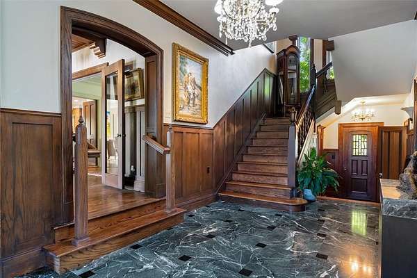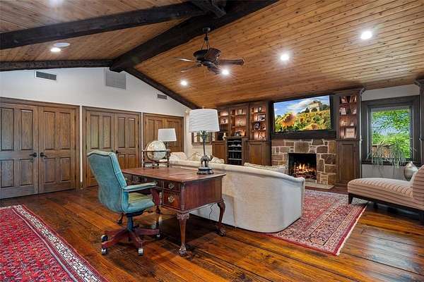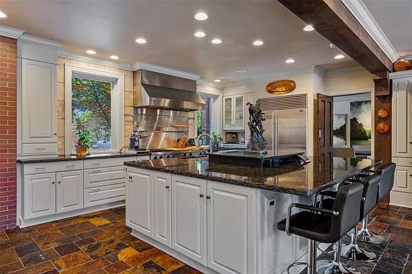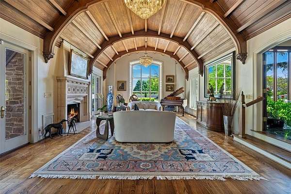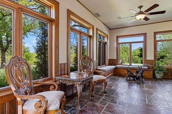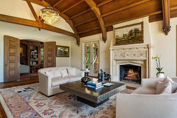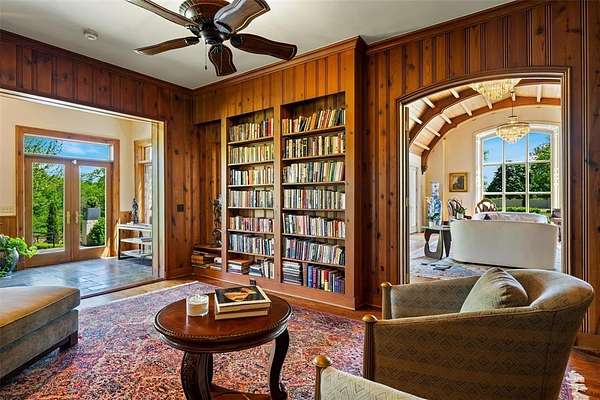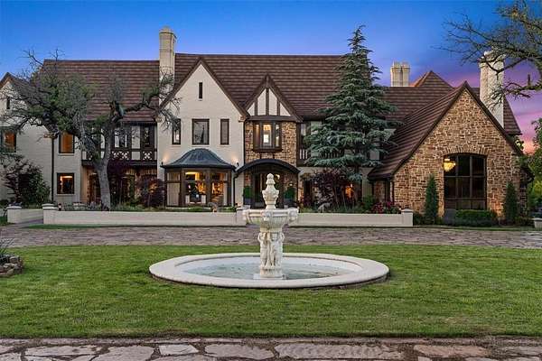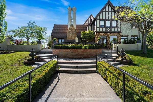 2203 E Wilshire Boulevard is a property of extraordinary provenance and architectural distinction. This gated 12.4-acre estate is one of Oklahoma City's most revered legacy homes, where timeless Tudor elegance meets curated modern luxury. Meticulously reimagined yet historically preserved, this is not simply a residence, it's a private sanctuary built to transcend generations. Nestled beneath a canopy of mature trees at the end of a stone-lined drive, the stately main house commands attention with its gabled rooflines, turreted entry, and richly appointed facade. Once inside, a world of bespoke craftsmanship unfolds, restored barrel-vaulted ceilings in hand-carved wood, a monumental Italian limestone fireplace, and original millwork that tells the story of a home shaped by time and refined by vision. A custom-designed kitchen by Karen Black of Kitchens by Design, is a masterpiece of form and function. The estate's living spaces are as memorable as they are inviting. A warm, wood-paneled library evokes the charm of an English countryside manor, while formal and informal living areas invite gathering and reflection, bathed in natural light and garden views. Five fireplaces throughout offer comfort and ambiance in every season. Outdoors, the amenities rival those of a private resort. A 90,000 gallon pool anchors the grounds, flanked by a full-service kitchen cabana clad in custom stainless cabinetry. The climate-controlled swim spa with retractable nano walls creates a seamless indoor-outdoor experience year-round. Adjacent are a lighted tennis court, a stocked pond with a dramatic fountain, and expansive lawns ideal for events, play, or pastoral escape. Equestrian-ready, the property features two stables, a tack room, and perimeter electric fencing. Two private wells support the home, pool, and irrigation, while modern infrastructure, including a whole-home generator, an elevator to all three levels, a wine cellar, and a five-car garage, ensure effortless living.