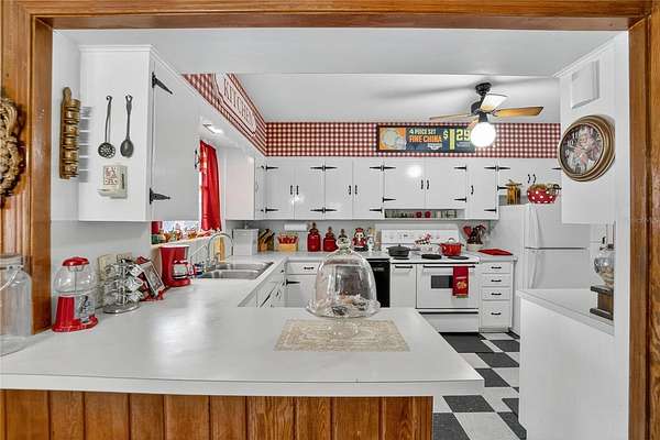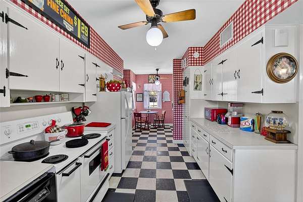 Featuring 3 bedrooms, 2 full baths, and 1 half bath, the spacious layout includes both a family room and a living room--ideal for entertaining or relaxing. The unique 1950s diner-style kitchen is a true centerpiece, combining retro flair with full functionality.