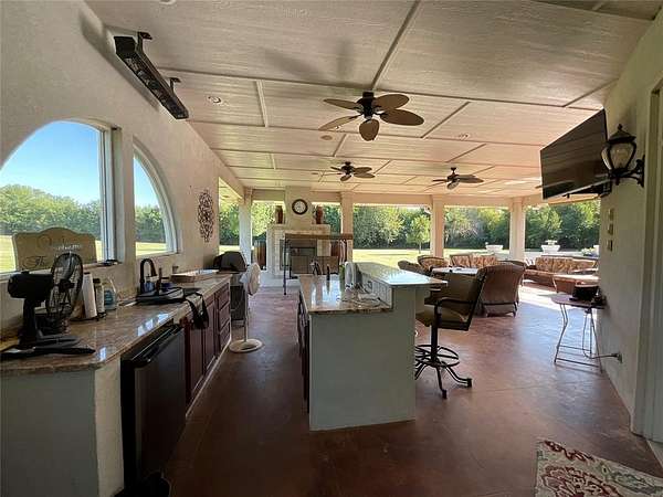 Welcome to your own private retreat on 15 pristine acres, blending Mediterranean elegance with modern comfort. This custom-built 3-bedroom, 4-bath estate is thoughtfully designed for both everyday living and grand entertaining, surrounded by wide-open green space, mature trees, and a tranquil pond with fountain. A long, gated driveway leads to the home, offering both privacy and curb appeal. Step inside to discover spacious living areas filled with natural light and framed by large windows that capture the beauty of the property. The luxurious master suite is a true retreat, featuring a private coffee bar, dual vanities, his and her toilets, and a direct private entry to the pool area. Guests will appreciate the convenience of a poolside bath with its own private access to the backyard oasis. The home's outdoor spaces are made for entertaining. A resort-style heated saltwater pool is the centerpiece, complete with expansive patios, covered lounging areas, and a fully equipped outdoor kitchen - perfect for summer gatherings, evening cookouts, or relaxing weekends at home. The design ensures seamless indoor-outdoor living, making it easy to host guests or simply enjoy the serene surroundings in peace. Additional highlights include a spacious multi-bay garage, beautifully maintained grounds with both manicured lawn and wooded acreage, and the versatility that 15 acres provides for recreation, gardening, or future additions. This rare Mediterranean-style estate combines luxury amenities with the tranquility of country living, all while being just minutes from town conveniences. From peaceful mornings by the pond to lively evenings by the pool, this property delivers the lifestyle you've been dreaming of.