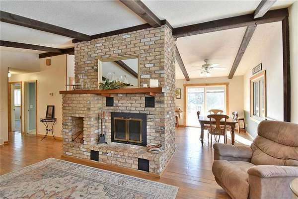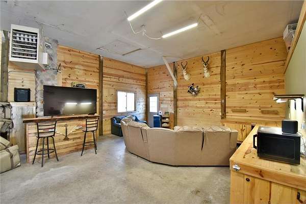 Unique 10-Acre Private Oasis Secluded 10=acre retreat with exceptional privacy, and abundant wildlife. Updated 4 bed / 2 bath home blends rustic charm with modern updates: -Gourmet kitchen with granite counters, custom knotty alder cabinets, soft-close drawers, under-cabinet lighting, entertainment island, and newer stainless steel appliances -Open floor plan flooded with natural light, bamboo flooring, and updated bathrooms -Spacious master suite -Two beautiful wood-burning fireplaces(one on each level) as striking focal points -Newer roof, furnace, electrical panel, wash/dryer, and more Step outside to a brand-new 16x16 deck off the dining area-perfect for peaceful views and relaxation. Massive 40x45 heated, insulated pole building with new furnace and internet-ideal for workshop, office, hobbies, or storage. A rare, one-of-a-kind sanctuary where nature and modern comfort meet perfectly.
