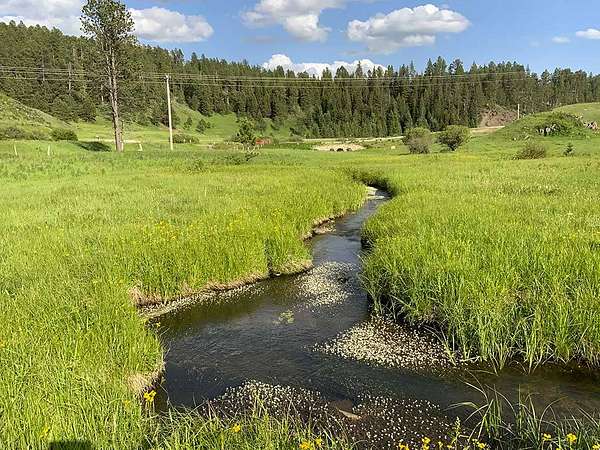 Two Creeks Ranch-128.89 Acres-Lead, South Dakota The Two Creeks Ranch is without question one of the most aesthetically pleasing properties in the Black Hills! Flanked by both North Rapid Creek and Buskala Creek, the two creeks gently meander through the entire property and converge as they exit, and the charming one-room cabin combines character and function. Truly a LEGACY property. Bordered by N Rochford Rd and the Mickelson Trail, 10 minutes from Lead, two live-water creeks - Charming one-room cabin - open meadows, surrounded by forest with gently sloping ridges. The improvements on the property consist of a nifty one-room 12x20 cabin with covered porch, electricity, and wood stove (furnished), together with a tool shed, outdoor shower, and outhouse. The property sells subject to an existing grazing lease for 25 Cow/clf pairs for the summer grazing season.