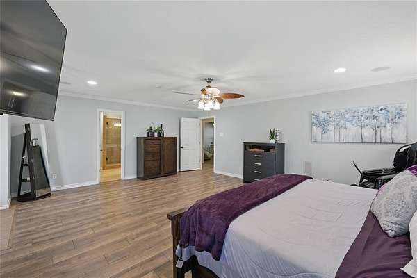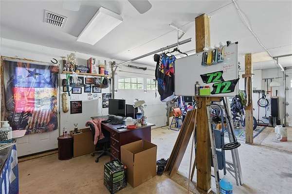 Looking for a peaceful country escape? This charming hideaway on about 2.5 acres might be just what you need. Tucked at the back of a beautiful, tree-filled lot, this updated traditional home blends comfort and style. The kitchen features updated appliances, and the newly installed luxury vinyl flooring gives the place a fresh, modern feel. A gated driveway winds through towering oaks, leading you home. Inside, you'll find soaring cathedral ceilings and an open layout that feels light and airy. A big, cozy stone fireplace sets the vibe, and built-ins throughout the home add extra charm and function. Whether you're hosting a gathering or just relaxing, the spacious deck and awesome fire pit make it easy to enjoy the outdoors. You'll also love the oversized garage for all your storage or hobby needs, plus a covered RV parking spot--perfect for travelers or outdoor gear. And that's not all--there's also a super versatile 1,500 sq ft. flex shop with four garage bays, a heavy-duty lift, a half bath, and full central heating and air. With its craftsman-style siding, it doesn't look like your typical barn. This space could be a second home, a workshop, a barn--or even a possible income-producing setup. Acreage sprinkler system uses well water. So many options, tons of charm--come see it for yourself!