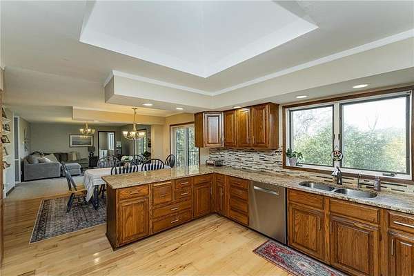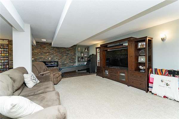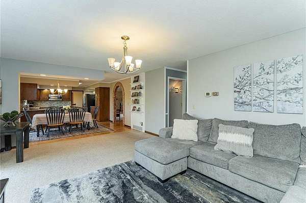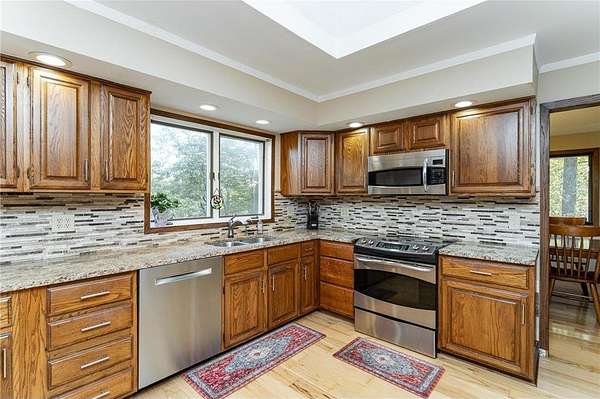 Discover over 5,000 finished square feet of living space in this stunning 4-bedroom, 3-bath home, set on a peaceful 2-acre lot in Bandel's Woodland Estates. Tucked along 67th Street NW, this residence combines the privacy of a country setting with the convenience of Rochester just minutes away. The main level greets you with expansive living areas filled with natural light. A spacious living room anchored by a cozy fireplace flows seamlessly into the dining area and a well-equipped kitchen with modern appliances and generous storage. Hardwood floors, vaulted ceilings, and oversized windows create a warm and inviting feel. The primary suite is a retreat of its own, complete with a walk-in closet and private bath. Additional bedrooms and bathrooms are designed with flexibility in mind--perfect for family, guests, or a home office. The fully finished lower level extends the living space even further, offering a comfortable family room, recreation space, and additional areas suited for gatherings, fitness, or hobbies. The exterior is just as impressive. A gated front brick courtyard provides a welcoming and private entrance, while the backyard is built for entertaining. Enjoy an expansive stone patio with a built-in fire pit, perfect for evenings under the stars, paired with an adjacent concrete patio that offers abundant room for outdoor dining and gatherings. Mature trees surround the property, enhancing both privacy and natural beauty. With a spacious 3-stall garage, thoughtful updates, and room to live, entertain, and grow, this home is a rare find in NW Rochester. Offered at $679,900 -- come experience the lifestyle this one-of-a-kind property delivers.