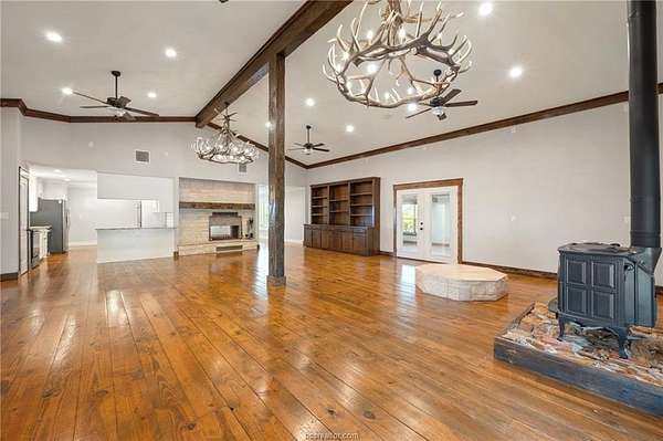 Set on nearly 70 acres in Caldwell, this versatile property offers space, functionality, and long-term potential. The approximately 3,930 square foot home features solid wood floors, plantation shutters, and a spacious layout with 3 bedrooms, 3 full baths, and two large living areas, including a two-sided fireplace and a wood-burning stove. Recent updates include a 2025 HVAC replacement and a metal roof installed in 2017 and rescrewed in 2025. Cattle are currently on the property, supporting an ag exemption. The property is perimeter fenced and cross fenced four ways with netted and barbed wire. It features one of the largest ponds in the county, stocked and filled via a commercial well. Seller owns all water rights (excluding commercial rights), which convey. Mineral rights available separately.
