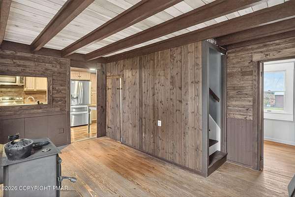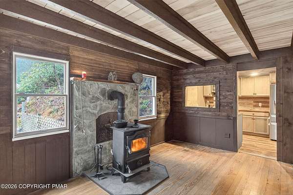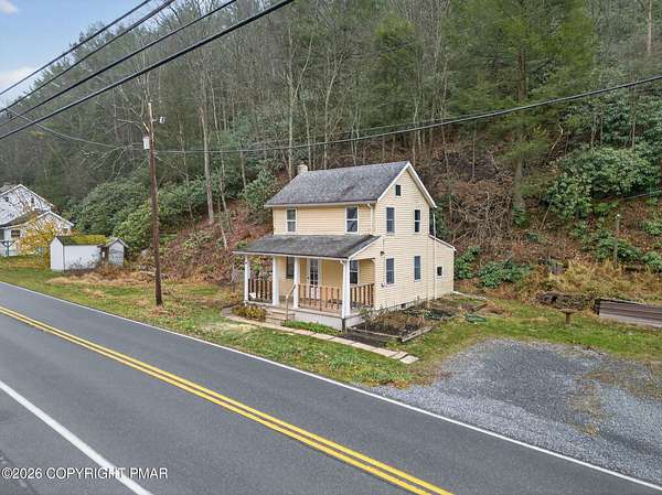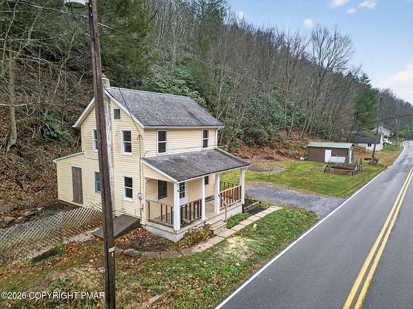 Cozy and quaint, this 3-bedroom, 1-bath farmhouse sits on 4 sloped, wooded acres and is full of character and rustic charm. Updated with warm wood accents, a new kitchen with all new appliances, and a refreshed bathroom featuring a beautifully upgraded shower, it offers a welcoming blend of old and new. The first floor features a living room with a coal/wood stove, an updated kitchen with all new appliances, a full bathroom, and a convenient first-floor bedroom. Upstairs, you'll find two additional bedrooms and a walk-up attic offering potential for finishing into additional usable space or storage. Outside, enjoy the covered porch, a flat open area ideal for gardening and chickens, a pole building/workshop, and graveled off-street parking. The property rises up the wooded mountainside behind the home to a private clearing with a hunting stand -- a dream for hunters and outdoor enthusiasts. There is also secondary access from Spruce Street at the top of the mountain. Located close to Beltzville Lake, Blue Mountain Ski Area, Jim Thorpe, the Lehigh River Gorge, and other Pocono attractions, this one-of-a-kind property offers something for everyone. Home has been refreshed but still needs finishing touches. Bring your ideas to make it your own!