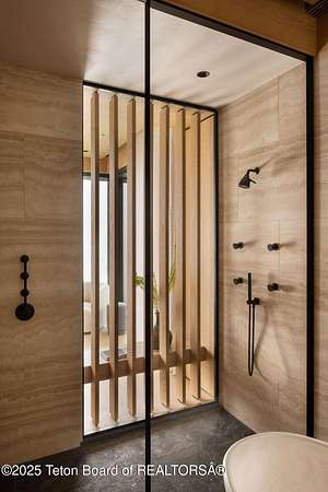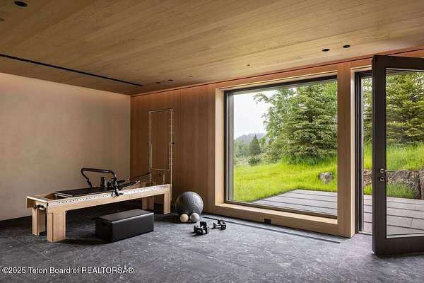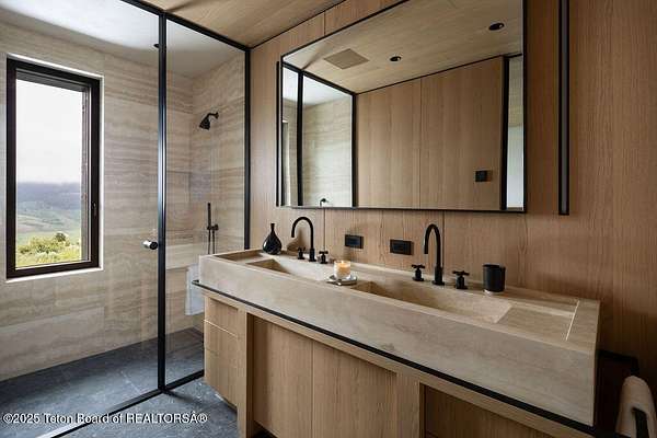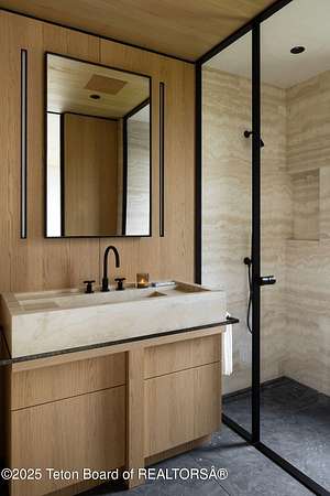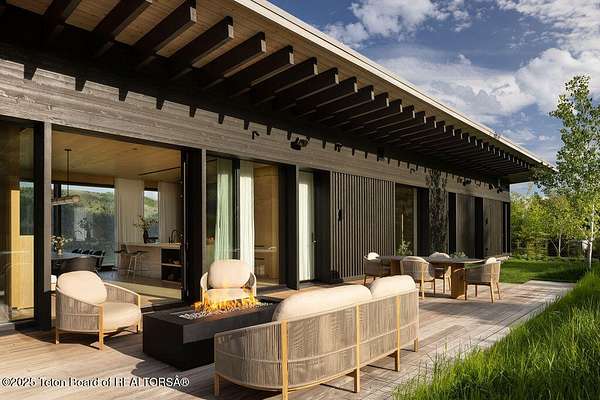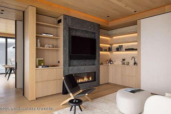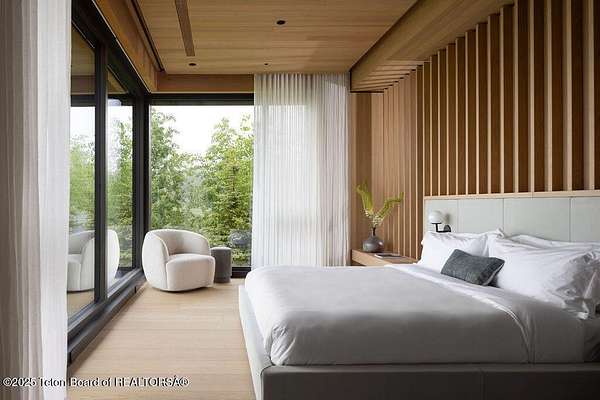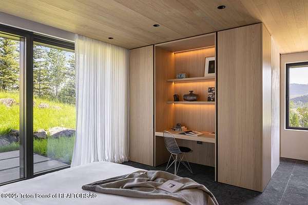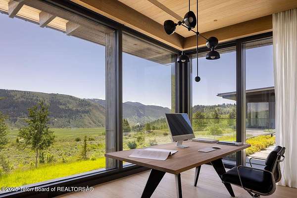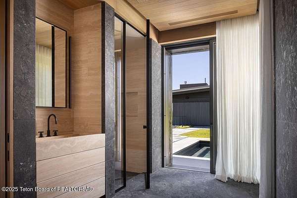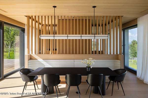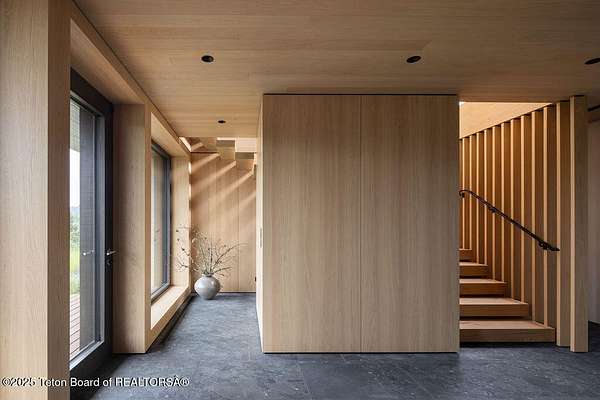 Overlooking the open valley with framed views of Sleeping Indian, The Sky House is a meditation on light, space, and material. Designed with Japanese and European influences, the 6,574-square-foot residence unfolds across 6.41 acres of native landscape, offering a quiet dialogue between architecture and nature. The interiors are wrapped in warm European oak and finished with Italian travertine, Madera wood ceilings, and hand-troweled plaster, each detail selected for its texture, tone, and sense of calm. Guided by principles of restraint and rhythm, the layout flows between five ensuite bedrooms, a private guest wing, and a central living area anchored by soft light and clean lines. Technological precision is woven discreetly throughout, while expansive windows and sliding doors invite the outdoors in. At once grounded and elevated, The Sky House embodies the rare kind of clarity that comes from living in harmony with place.