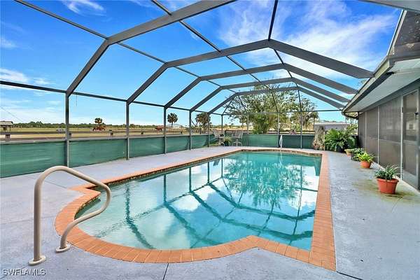 Motivated! Sellers will look at all offers! This 10-acre fenced horse farm, "Majestic Oaks," offers space, serenity, and income potential! The sellers are ready to negotiate. Property Features: - 4 Bedrooms + Den | 3 Bathrooms | 2,752 Sq Ft - In-ground pool with large deck -Front and back screened Lanai's, -Newer roof, granite kitchen counters, formal dining - Gated entry with double driveway, lush native landscaping Equestrian Features: - 7 oversized 12x12 stalls - 6 high & dry grass turnouts - Extra-wide center-aisle barn - Covered wash rack (hot & cold water) - 12x24 A/C tack room with half bath - Feed room, hay shed, pole barn with water & electric (convertible to 3+ stalls) - Ample storage throughout This property has run a successful boarding business for 15 years and offers excellent income-producing potential. Located in the Alva area, known for horse trails, river boating, and farming. 5 minutes to gas and post office. 20 minutes to I-75. 30 minutes to downtown Fort Myers. Perfect for horse lovers, trainers, or anyone wanting space and privacy. Call today to schedule your private showing Today!
