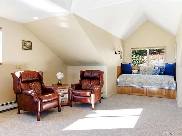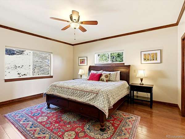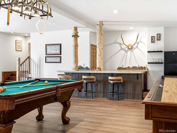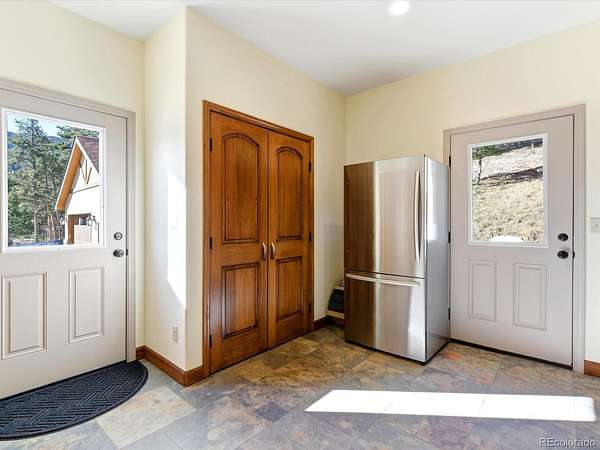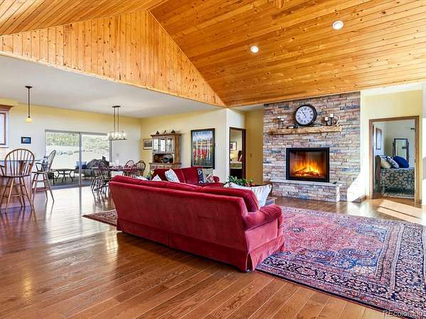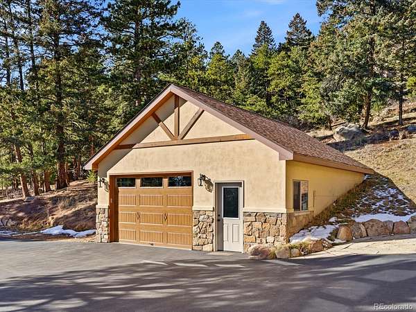 Located in the highly desirable Homestead neighborhood, this custom built mountain home offers the perfect blend of community, privacy, and convenience, all just a short drive to Denver. Built and lovingly maintained by the original owners, the home has been exceptionally well cared for and presents like a brand new home. The highly sought after main floor living floor plan features a spacious primary suite on the main level, along with a second main level bedroom with its own bathroom, ideal for guests or multi-generational living. Vaulted ceilings and a wall of windows fill the main living area with natural light and showcase rolling mountain views, creating a welcoming space for everyday living. The open concept kitchen is both beautiful and functional, featuring striking cabinetry, a gas cooktop, double oven, wine fridge, large island, and abundant countertop space for meal prep and gathering. The layout flows seamlessly into the dining and living areas, making it ideal for entertaining. Upstairs, a massive bonus room offers incredible flexibility and could easily serve as a fifth bedroom, home office, art studio, or game room. The walk out lower level extends the living space with a bar and plenty of room for a pool table, shuffleboard, darts, or movie nights plus two more bedrooms. A generously sized mudroom provides the perfect drop zone for Colorado living, with space for boots, coats, laundry, dogs with muddy paws, and even an extra refrigerator. Car enthusiasts and outdoor adventurers will appreciate the attached two car garage plus a detached two car garage, ideal for a workshop or storing skis, bikes, and fly fishing gear. Situated on a quiet cul-de-sac with a private backyard, this home offers a peaceful mountain setting with a true neighborhood feel. Start your day with a cup of coffee on the front porch as the morning sun rolls in and indulge in the best of mountain living!