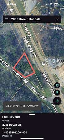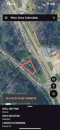 Est $717/moThis 1-acre plot, made up of two adjacent parcels, is perfectly located at the high-visibility intersection of Highway 31, Stouts Road, and Republic Avenue. It is locatedbetween Highway 31 and Stouts Road. Zoned B1 (Neighborhood Business District), this vacant land is a blank canvas for your entrepreneurial vision. Whether you're dreaming of a boutique retail center, trendy coffee shop,