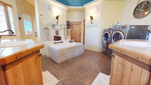 Incredible Ranch Estate with horse privileges. Entering the home you're greeted by vast spaces for entertaining, corporate retreats & more. Massive backyard is privately fenced in ''compound'' style & will make a great location for your next big event or just a family get-together. 5-Car ultra-high garage houses an array of toys, geothermal heat is super-efficient & location is superb. Sold AS/IS,All garages are plumbed for air compressor, shop Garage is wired for 220 outlets, Heating and Air is 3 Geo-thermal Heat and air pumps the air is 68 degrees constant air. Basement is fully enclosed in Concrete, 2'' foam insulation ICF forms inside and out on main floor, Plumbed for kitchen in basement, special engineered ceiling over basement that eliminates any post or wall in basement.