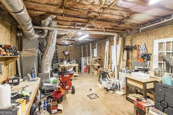 This exceptional 4-bedroom, 2.5-bath home offers space, character, and privacy on 2.85 secluded acres. Rich heart pine flooring flows throughout most of the home, complemented by stunning heart pine cabinetry that adds warmth and timeless appeal. The kitchen and laundry feature durable ceramic tile and provide excellent functionality for everyday living. The spacious primary suite is conveniently located on the main level, while the remaining oversized bedrooms are upstairs, offering ample room for family or guests. A large back deck overlooks the private acreage, creating an ideal setting for relaxing or entertaining. The basement is heated and cooled and includes a finished office, making it perfect for remote work or additional living space. An unfinished portion of the basement offers excellent potential-just add sheetrock and finishes to customize to your needs. This property combines generous living spaces, quality craftsmanship, and peaceful seclusion, making it a rare opportunity for those seeking privacy without sacrificing comfort.