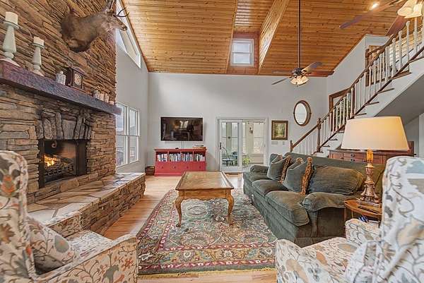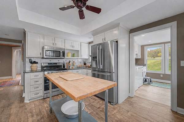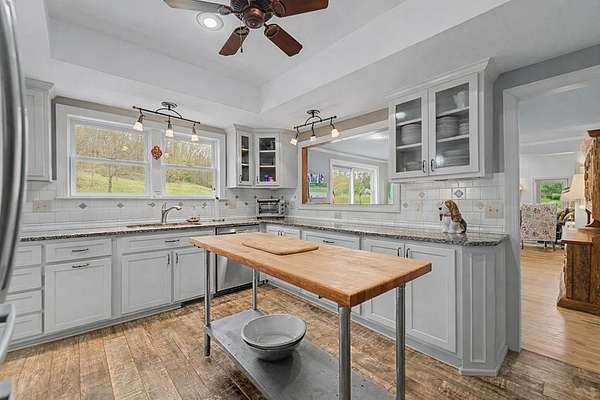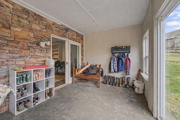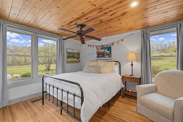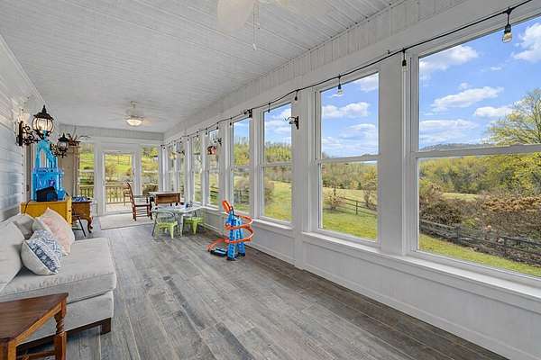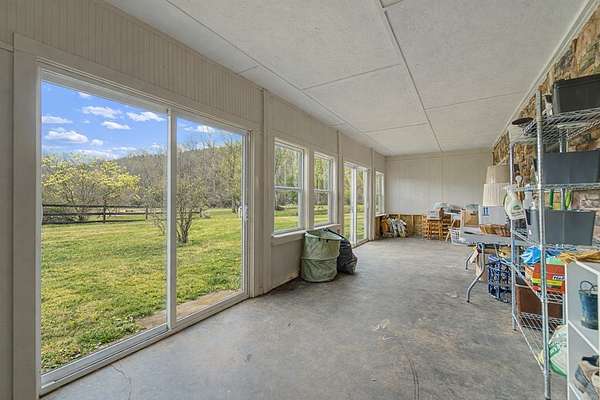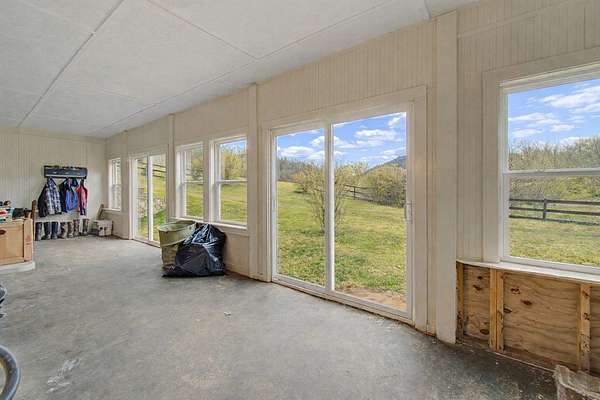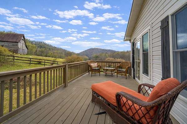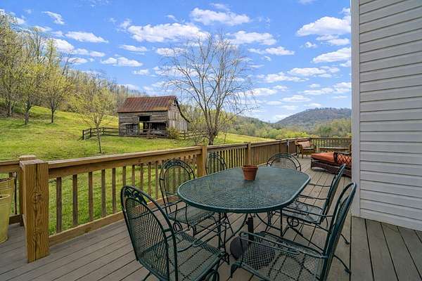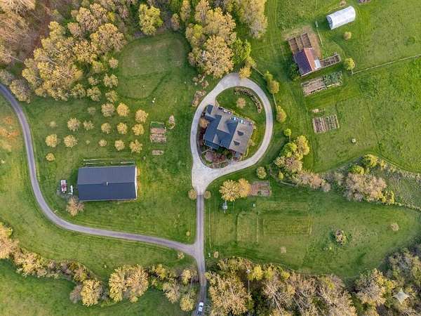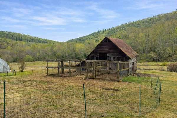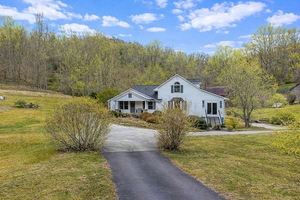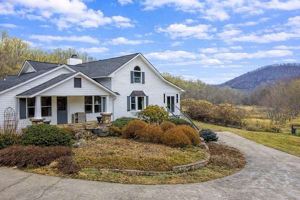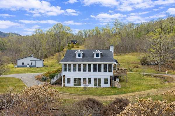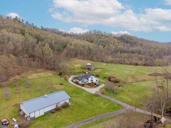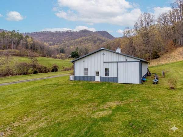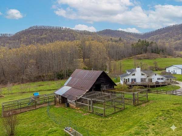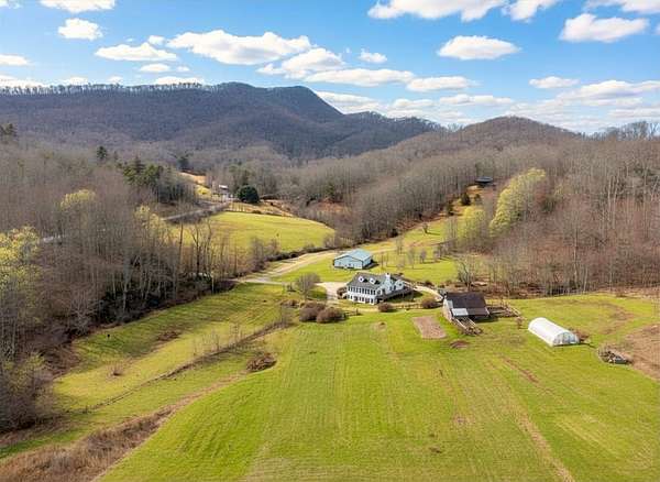 An exceptional high elevation mountain property offering 6.06 acres at 3,200 feet with long-range views, bold creek, fruit orchard, lush pasture, and gently rolling, highly usable land. Ideal for those seeking space, privacy, and a true Western NC mountain lifestyle. The modern farmhouse blends warmth and character with thoughtful updates, featuring 4BR/2BA with a loft and an expansive primary suite designed as a private retreat with generous space and comfort. The great room is anchored by a striking rock fireplace, complemented by a formal dining and a modern kitchen created for gathering. Flexible living areas include a sunroom ideal for indoor gardening or relaxation, plus a spacious lower level suited for a den, office, or recreation. Starlink internet installed. Expansive outdoor living spaces overlook the farm and surrounding mountains. The impressive 75x42 Morton metal building with backup generator, picturesque functional log barn, greenhouse, and established garden areas complete this rare Western NC mountain homestead built for self-sufficient living. Additional land and home available, see MLS #