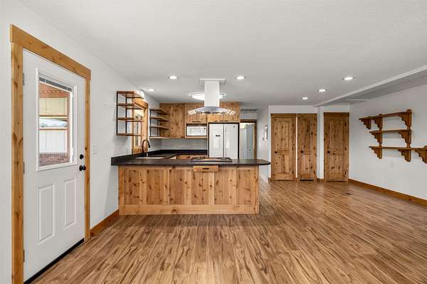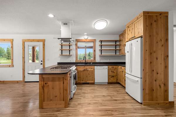Hard-to-find mix of residential living with a 1,440 sq. ft. attached garage/shop! This 3-bedroom, 3-bathroom home is comprised of 2 master suites, and a bedroom/bathroom in the shop for private guest quarters. The shop includes 12-ft' ceilings, a deep bay with a workbench, and ample loft storage. Two separate entrances for ease of access. A recent remodel includes new siding, updates to the general interior, and an added master suite with private access to a new outdoor patio with pergola, equipped with plumbed-in gas for BBQ and fire pit-perfect for entertaining and enjoying the quiet and pristine views and wildlife! This property was recently a fully booked vacation rental. Situated on over 2.5 acres of landscaped property, with underground sprinklers, and an RV pad with electric and sewer dump to accommodate seasonal guests. Also included, a large storage shed built to match the main residence. Minutes from town but feels like rural living, paved access and direct entry to the Rails to Trails path for walking and biking. Central access to all that the Flathead Valley recreation has to offer-Glacier Park International Airport, Whitefish Mountain, Glacier Park, Flathead Lake, just to name a few. This property is nestled amongst properties of much higher value on large parcels, near Ashley Creek. It's a gem! Listing agent related to seller.
