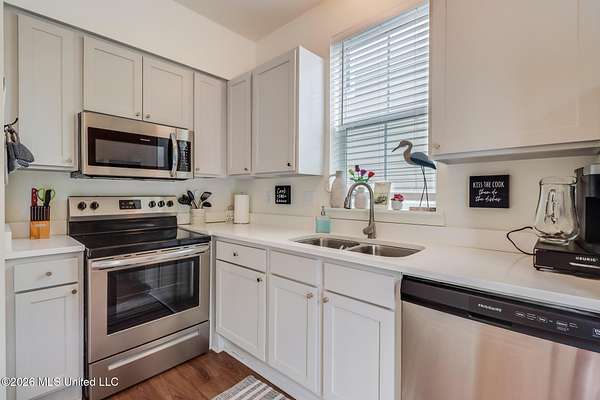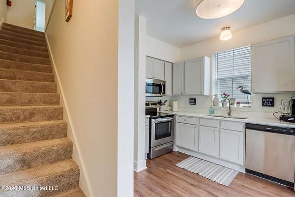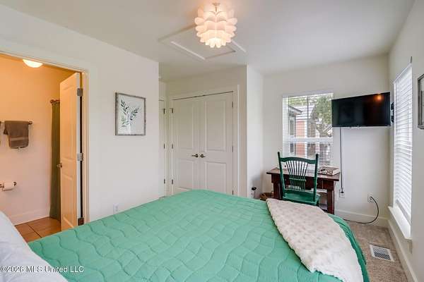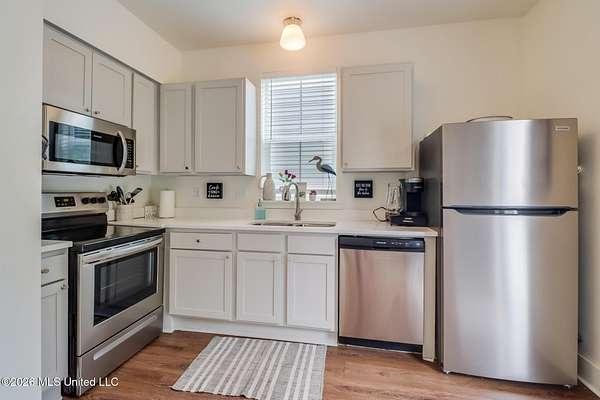 This is your chance to own a home in one of the nicest, walkable small towns in Mississippi! Ocean Springs is so charming and colorful, full of art and history, fabulous food, and there is always something wonderful to do! Just pack your bag and settle into this fully furnished, coastal cottage and start enjoying life! Perfect for full and part-time living, or use it as a short-term rental. Everything you need is here! A half bath has been added downstairs for your convenience, and easy entertaining. Currently used as a short term rental, this unit has terrific income potential too, and a proven track record. The 6 person golf cart is negotiable also, so don't wait - make your appointment soon!