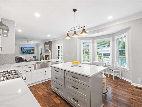 - Bookcases, Built-In Features, High Ceilings, Kitchen Island, Open Floorplan, Pantry, Walk-In Closet(s)