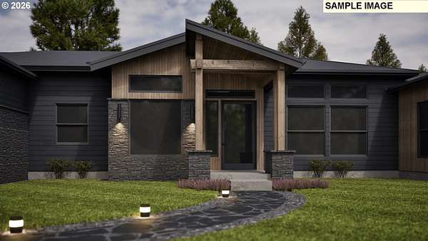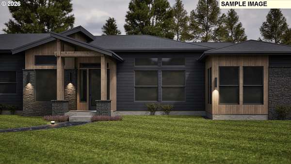 Discover this exceptional contemporary home offering 3,092 sq ft of spacious living on a beautiful 1.99-acre lot. This thoughtfully designed residence features 4 bedrooms and expansive main living areas with soaring 12-foot ceilings, creating an open, light-filled atmosphere throughout.The luxurious primary suite is a true retreat complete with dual vanities, a soaking tub, walk-in shower and an impressive 15x11 walk-in closet. A conveniently located utility room off the primary suite adds everyday functionality.The open-concept modern kitchen is perfect for entertaining and includes a gas range, large island and oversized walk-in pantry. The hall bath offers double sinks, while a stylish powder room off the mudroom provides easy access from the 3-car garage.Secondary bedrooms are generously sized at 15x12 with Bedrooms 2 and 3 featuring walk-in closets. Bedroom 4 offers flexibility as a den, home office or guest room.Enjoy exceptional outdoor living with a huge 18x16 patio plus an additional 26x16 covered patio, ideal for entertaining or relaxing. The vaulted front porch adds curb appeal while the home's sleek modern design makes it a rare gem in today's market.