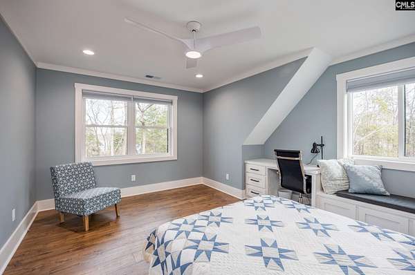 - Attic Pull-Down Access, Ceiling Fan, Smoke Detector, Wetbar