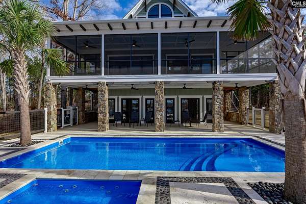 Discover luxury lakefront living at its finest in The Preserve at Stillhouse Branch -- home to some of Lake Wateree's most stunning waterfront residences! This exclusive, privacy-focused subdivision sits atop rocky shores with magnificent hardwood forests opening to breathtaking main-channel views. Nestled on a rare, nearly 4-acre main-channel lot, this custom retreat, built in 2023, offers approximately 6,000 sq ft under roof and reflects the owner's relentless dedication to perfection -- the exceptional quality is evident throughout. Designed for effortless, low-maintenance enjoyment, the property features a powder-coated aluminum dock, durable fiber cement siding, low-upkeep decking and corbels, and natural landscaping with native grasses and wildflowers. The home excels at seamless indoor-outdoor living, with thoughtfully defined entertaining spaces that flow effortlessly from inside to out. And look at that swimming pool and hot tub surrounded by travertine tile patio! Step inside to find sophisticated upgrades including coffered and soaring wood ceilings, board-and-batten accent walls, beautiful oak flooring, multiple kitchen islands, quartz and granite countertops, full-height tile showers and backsplashes, spa-like bathrooms, tile floors in all baths and the laundry room, oversized glass shower doors, a dramatic bifold patio door, and an awning window -- just to name a few highlights. Entertaining is elevated to an art form: keep your beer perfectly chilled with four beverage appliances or pour straight from the keg tap. Store whites in the dedicated wine cooler or display your collection on elegant wall-mounted wine racks. Multiple ice machines, microwaves, and dishwashers ensure everything runs smoothly for gatherings large and small. This is more than a home -- it's a meticulously crafted lakeside sanctuary ready for your next chapter of relaxation and celebration. Welcome to lake life, perfected. Disclaimer: CMLS has not reviewed and, therefore, does not endorse vendors who may appear in listings.