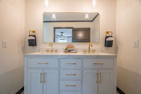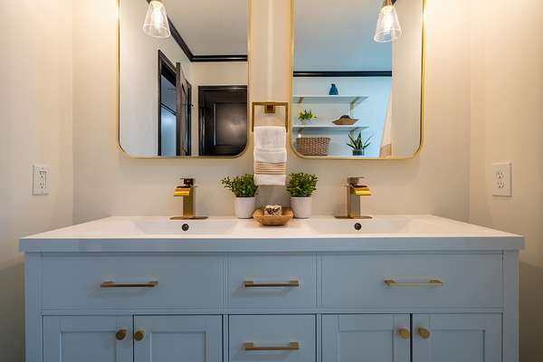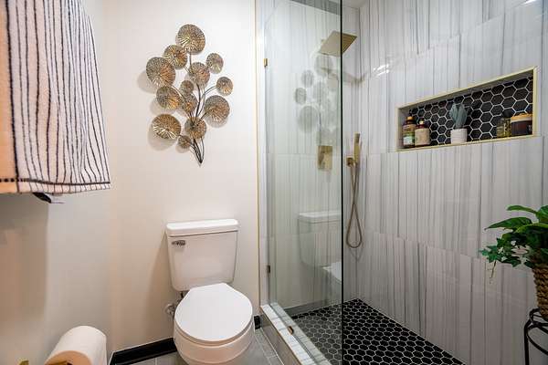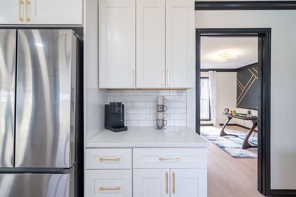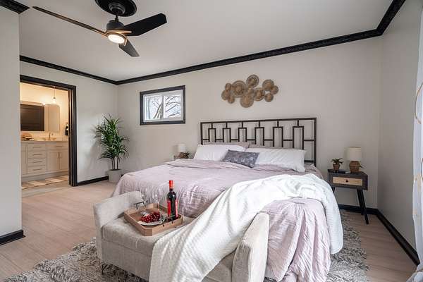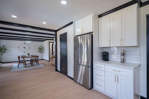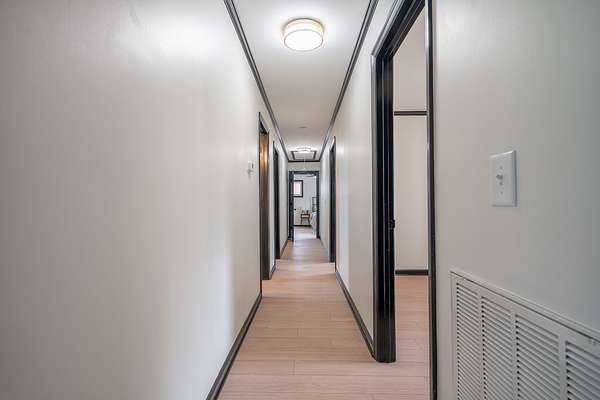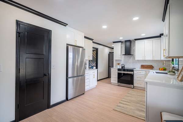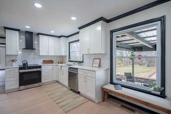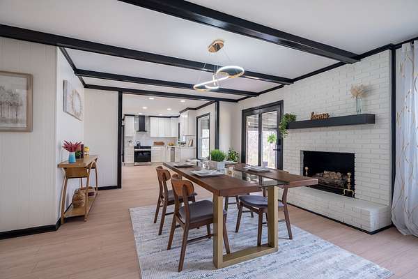 The home has been completely updated from top to bottom with a fully renovated kitchen and bathrooms, plus a new roof and HVAC. Inside, the modern design features an abundance of natural light that fills the home throughout the day.