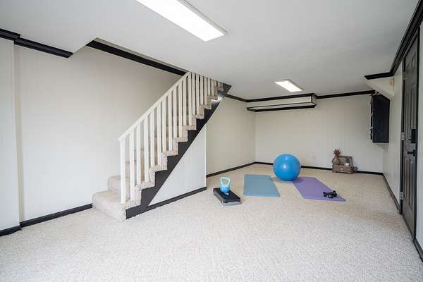 A dedicated home office, large den, and convenient guest bath provide plenty of flexible living space. The partially finished walkout basement offers additional room for a gym, media space, or hobby area, while the remaining basement area includes a one-car garage and extensive storage.