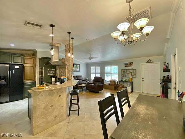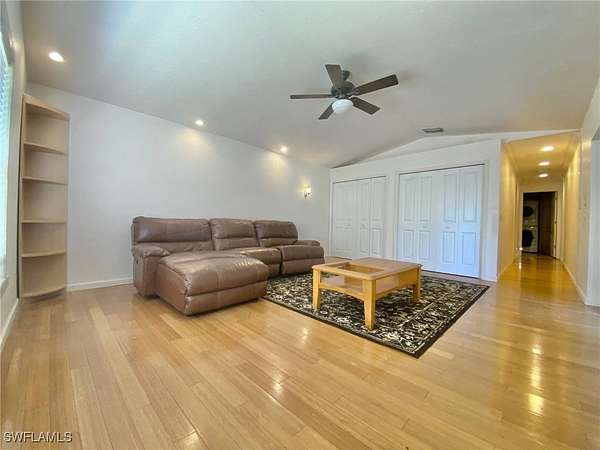 Home will NOT qualify for FHA or VA because of the age of the roof (estimated at $20K to replace). Welcome to this beautiful 2,205 square foot living area FOUR bedroom plus a den, 2 bath, 2 car garage home with a WHOLE HOUSE RO system in Alva on 1.50 acres and NOT IN A FLOOD ZONE (flood insurance is not required)! Crown molding adorns the cathedral ceiling as you step inside along with natural travertine, slate, tile and hardwood floors found throughout this spacious home! This well thought out home offers spacious rooms and a split bedroom floor plan. You'll find the kitchen is well appointed with a cooktop, built in oven, microwave, plenty of cabinet storage. Just down the hall is a ridiculously huge laundry room with a large pantry closet and cabinets galore! The master bedroom suite has a separate sitting room adjoining the bedroom, an oversized walk in closet and bathroom with a soaking tub and a separate shower. You'll find the other 2 bedrooms are nice sized too, but the back bedroom is GINORMOUS which would easily fit a king sized bedroom set and a seating area! The guest bath has an outside door to the lanai in case you want to add a pool. A majestic Live Oak tree is the central hub of the yard and has hosted many afternoons of relaxing BBQ's and dining outdoors! The house sits in the middle of the 1.50 acres with one acre cleared and fenced ready for your dog or chickens to explore. The additional half acre with mature pines and palmettos and is partially fenced on the back side. If you're looking for peace and quiet out in the country, but still close to shopping and other conveniences you've just found it! Come and see if it's the right fit for you and your family!