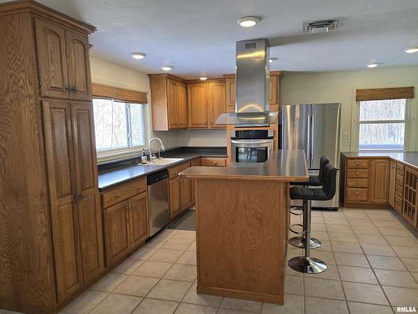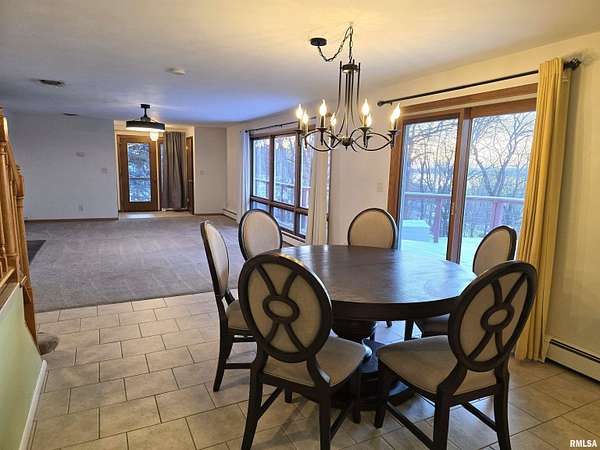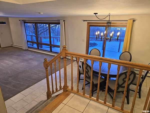 Welcome Home! Situated on over 4 acres, this stunning 4-bedroom, 2.5-bathroom offers scenic river views from interior living spaces, where large windows frame the natural landscape and bring the outdoors in! The custom kitchen offers abundant cabinetry and generous counter space, complemented by beautiful stainless appliances and opens out to a large deck for entertaining guests. An oversized window above the kitchen sink overlooks the front of the property and captures the views. The walk out lower level offers more exceptional views and features a cozy fireplace, a spacious fourth bedroom with egress window, a full remodeled bathroom and is ideal for guests, a home office or extended living. An oversized heated tandem 3-car garage provides ample room for vehicles, tools and hobbies. Tour, fall in love, and make it your own! Appliances stay but sold "as is". Room sizes and square footage are estimated, not guaranteed to be correct. SQ. FT. per Tazewell County records.