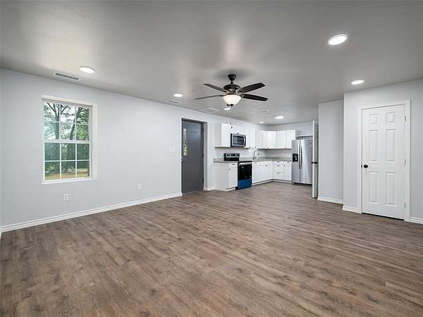 7.4 acres Park like setting. This is a rare find! Excellent Location! Near Lake Palestine NO RESTRICTIONS 2000 sq ft Shop including 640 square foot living quarters 1 bedroom 1bath. NEW appliances in the apartment with a Four ton HVAC fully heated and cooled Shop and apartment. spray foam insulated. new build completed in August 2025. sprinkler system. Multiple options are available here. Beautiful home sites waiting, or live in the shop apartment, and potentially build out the double carport areas. each side is 15X40. RV hook up. Community water connections. additional electricity set for service. 2 200amp services.