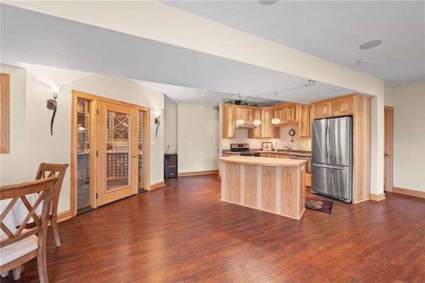 The main level features a light-filled open floor plan and kitchen with modern appliances, and abundant counter space. The spacious primary suite offers a spa-like ensuite bath with soaking tub, walk-in shower, and dual vanities. Additional bedrooms and baths provide flexible space for family, guests, or home offices. The fully finished walkout lower level is a showstopper -- complete with a second full kitchen featuring premium finishes, a large living/entertaining space, and a wine cellar for your collection. This level is perfect for hosting gatherings, extended stays, or true multi-generational living with privacy and comfort.