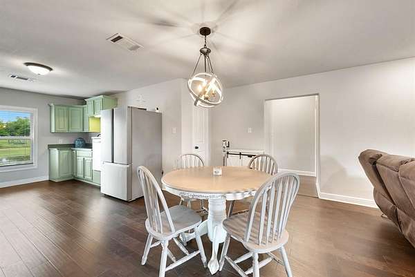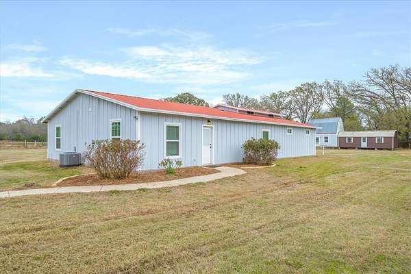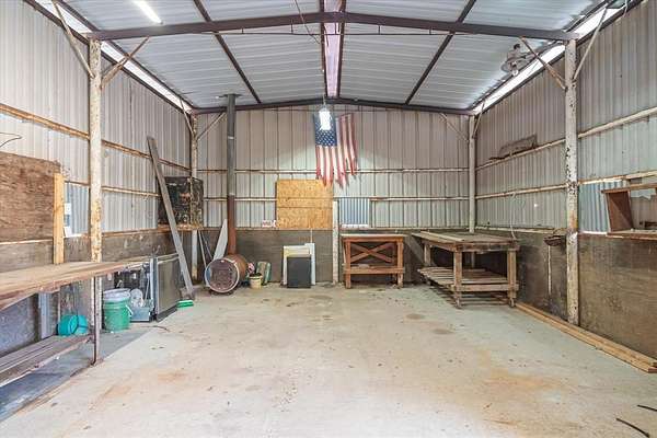 Situated on 2.3 acres, this unique 3 bedroom, 2 bath, 1,360 sq ft property offers exceptional flexibility for both living and working from home. The main structure is thoughtfully designed with comfortable living quarters and a large, climate-controlled flex space ideal for a garage, barn, workshop, man cave, hobby or small business use. Featuring spray-foam insulation, epoxy floors, mini-split HVAC, and a 220V outlet, the space is ready to adapt to your vision and is well-suited for a dog kennel, boarding, training, or grooming operation. Inside the home, enjoy updated windows, stylish light fixtures, and a well-appointed kitchen with stainless steel appliances, a new granite farmhouse sink and 2 pantry options. The primary suite includes a walk-in closet, while both bathrooms are tastefully finished. One with slate tile and a walk-in shower, the other with a soaking tub. A spacious mudroom with built-ins and direct outdoor access provides excellent storage and everyday convenience. Outdoors, the property continues to impress with multiple storage buildings, including a loafing shed, a separate 30x30 workshop with storage, and a lofted unit. A mature tree line offers privacy and a peaceful setting, creating the perfect blend of functionality, flexibility, and rural charm.