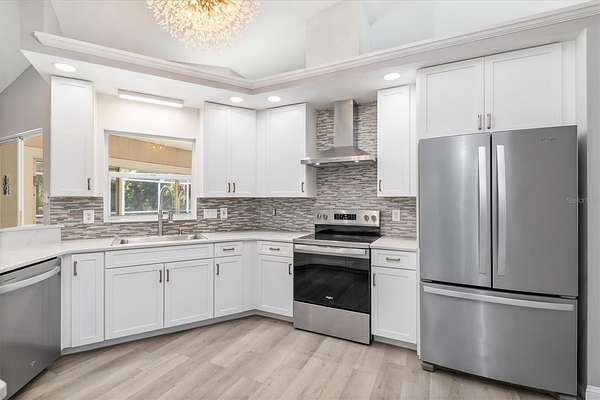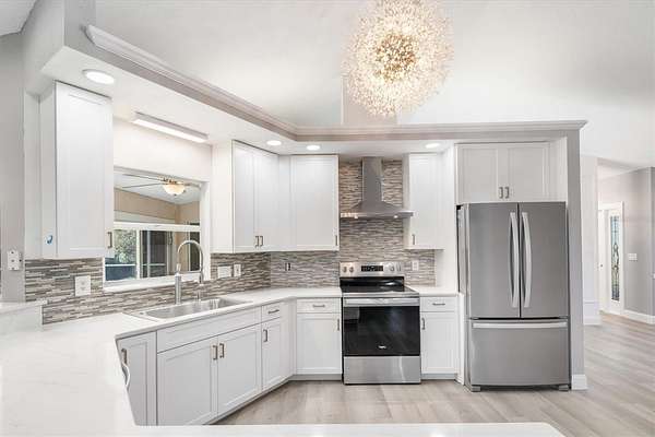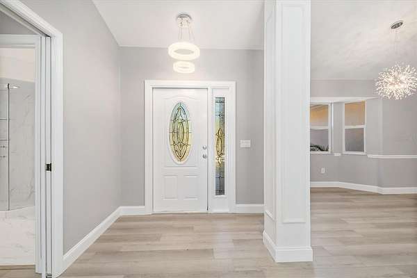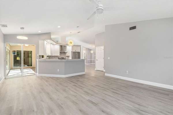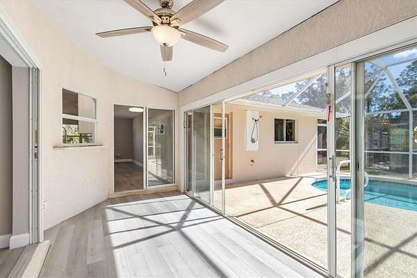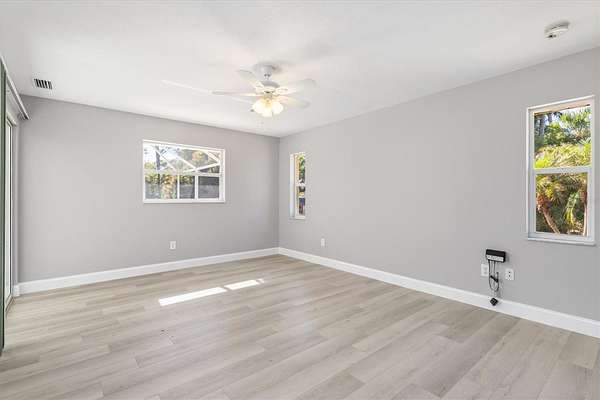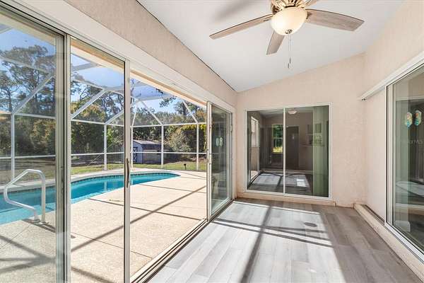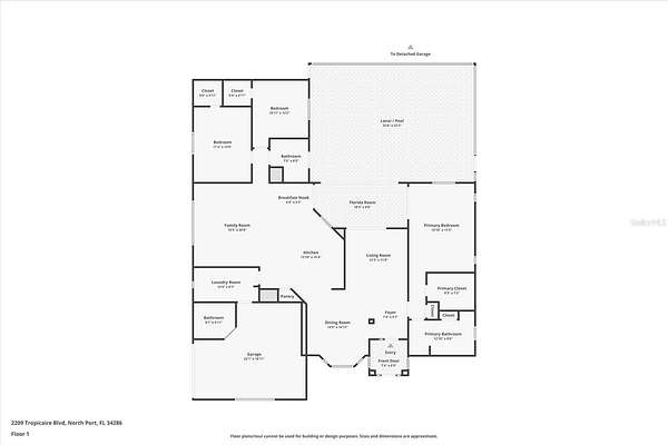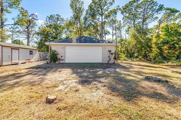 RARE OPPORTUNITY IN THE NORTH PORT ESTATES! BEAUTIFULLY UPDATED 3-acre parcel POOL HOME with 3 bedrooms, 2.5 baths, 1 car attached garage with side garage entry and half circular driveway, PLUS A DETACHED 30x30 4 CAR CONCRETE BLOCK GARAGE with over 2000 sq. ft of LUXURY living space! ANIMALS & HORSES WELCOMED! The air-conditioned 2 car garage is currently being used as a game room with wall a/c and includes a half bath. Hobbyists & Car enthusiasts will love the covered space to store cars, trucks and all the big toys! Pool table included! Located in one of the most desirable North Port Estates neighborhood, this HEATED in-ground pool home delivers space, style, and flexibility in one exciting package. New items include NEW Roof (2023), NEW well pump, Re-piped plumbing (2025), NEW wood cabinetry with slow close feature, solid surface countertops, NEW glass tiled backsplash, NEW accent lighting, eye-catching chandelier and light fixtures, NEW stainless faucet, NEW paint, NEW crown molding, NEW laminate waterproof plank tile flooring through out, NEW sleek stainless hood stack, NEW whirlpool range, dishwasher, washer & dryer, deep walk-in pantry & more! Through the etched glass front door, the home opens to a formal living room with decorative pillar and formal dining room with modern NEW LED lighting and dining room chandelier, enhanced by a bump-out window and classic chair railing trim. These spaces create a bright and open first impression and flow smoothly into the heart of the home. Recessed lighting adds a clean look, while the large breakfast bar and pass-through window to the lanai make entertaining easy. A deep pantry and reverse osmosis system under the sink add smart convenience. The spacious family room and dinette area feature sliding doors that lead to the Florida room, finished with durable laminate waterproof flooring and views of the pool area. This space blends indoor comfort with outdoor living, making it a favorite spot year-round. Occasionally a friendly deer will walk by to visit! The heated in-ground pool invites relaxing afternoons and fun-filled evenings, with direct access from the guest bathroom for added ease. The primary bedroom includes a large walk-in closet, ceiling fan, & sliding doors to the Florida room. The private updated bath showcases UPDATED dual sinks with modern lighting and mirrors, Corian countertops, and a walk-in shower with a glass door. Two additional bedrooms also feature walk-in closets and ceiling fans, offering generous space and comfort. Waterproof laminate flooring runs throughout the entire home, paired with beautiful NEW modern light fixtures that add a fresh, updated feel. The laundry room is oversized and includes a modern new washer and dryer, numerous storage cabinets, and a utility sink. A half bathroom in the garage/game room adds extra functionality. Outside, the property truly shines. A detached 4 garage in the back, ideal for a workshop, hobby space, or extra storage. 2 storage sheds and ample parking space complete the outdoor setup. Located close to the new SMH Hospital being built, schools, shopping, restaurants and the Atlanta Braves training stadium. This special home combines privacy, convenience, and lasting value. Location is minutes to Myakkahatchee environmental park where hiking, jogging, fishing, canoeing, biking and picnicking are welcomed. Easy quick access to I-75. Schedule a private tour today!