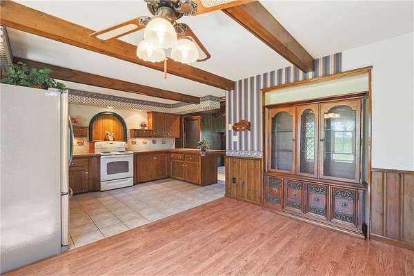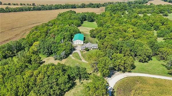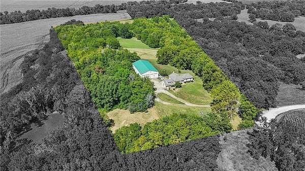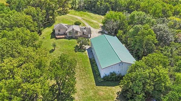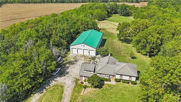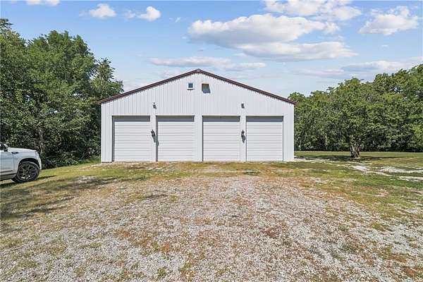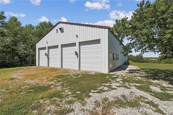 Welcome to 22093 Poplar Road in Higginsville! As you approach this remarkable property, you'll be greeted by a secure gated entrance and a driveway leading to a stunning 2,696 square foot home, nestled on 20 picturesque acres complete with a pond. This charming residence boasts four bedrooms and three bathrooms, featuring a spacious living room with vaulted ceilings and an electric fireplace. The expansive kitchen provides abundant cabinet space, perfect for any culinary enthusiast. A two-car attached garage offers convenience and storage. Adjacent to the home, you'll find a versatile 50' x 90' metal building equipped with four 12' overhead doors, opening into a shop area ideal for vehicle storage or workshop use. This space holds incredible potential for a variety of uses. Additionally, there is room to create a mother-in-law suite or even a barndominium, making this property ideal for multi-generational living or a unique custom home. The shop area itself could easily be transformed to suit your specific needs and style. Enter the building from the east side, and you'll step into what was once a professional recording studio, complete with a full kitchen, his-and-hers bathrooms, soundproof rooms, and five vibration-mounted HVAC systems in the attic--this is a space with both character and flexibility. This property is truly a blank canvas with endless possibilities, whether you're looking to create a beautiful wedding venue, a serene country estate, or anything else your imagination can dream up. The options are as vast as the land itself. Ready for its new owner to call it home, this is a unique opportunity to shape your dream lifestyle!