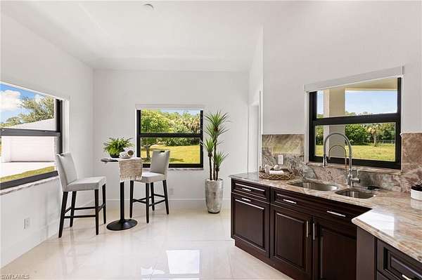 Incredible opportunity! This 5-acre, 100% upland property offers canal access right from your backyard and abundant space for vehicles, equipment, and animals. The completely upgraded and TURNKEY 3-bedroom + den, 2-bath, 2,116 sq. ft. single-family home is fully move-in ready. Situated on 5 fully fenced upland acres with a canal at the rear, this property provides exceptional potential-add a guest house, workshop, or additional structures with ease. It's an ideal setup for small business owners needing space for vehicles or storage. Inside, the home features a bright and spacious living area with soaring ceilings and large sliders overlooking the expansive backyard. The upgraded kitchen includes rich wood cabinetry, granite countertops, breakfast bar, stainless steel appliances, electric cooktop with range hood, double wall oven, microwave, refrigerator, and even a built-in espresso machine. Enjoy sunrise views from the charming breakfast nook, bar seating at the pass-through window, and an additional formal dining space for entertaining. The owner's suite is light and airy with a walk-in closet featuring built-ins and a spa-inspired bathroom offering a jacuzzi tub with massage, music, and LED lighting, separate tiled shower with glass doors, and dual vanities. Two additional spacious bedrooms share an updated full bath with newer vanity and glass-enclosed shower. The den provides flexibility for a 4th bedroom, office, gym, or guest space. A well-appointed laundry room includes a sink and cabinetry for storage. The detached two-car garage, finished with tile flooring, offers the opportunity for conversion into additional living space if desired. Roof replaced in 2018, fencing added in 2021 (both permitted). Bring your boats, RVs, trailers, animals-there's room for everything! Adjacent 2.5-acre 100% upland lot also available for purchase.