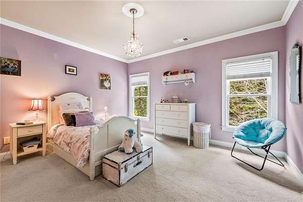 Welcome to this magnificent European-inspired estate, set on 3.64 private acres behind your own gated entry, yet just minutes from the charm and convenience of downtown Crabapple. Nestled at the end of a quiet cul-de-sac, with seasonal views of a creek, this 5-bedroom, 5.5-bath residence has been thoughtfully designed with distinctive European styling. Exquisite woodwork, soaring ceilings, arched windows, marble and hardwood floors, and multiple balconies all combine to create a timeless elegance.